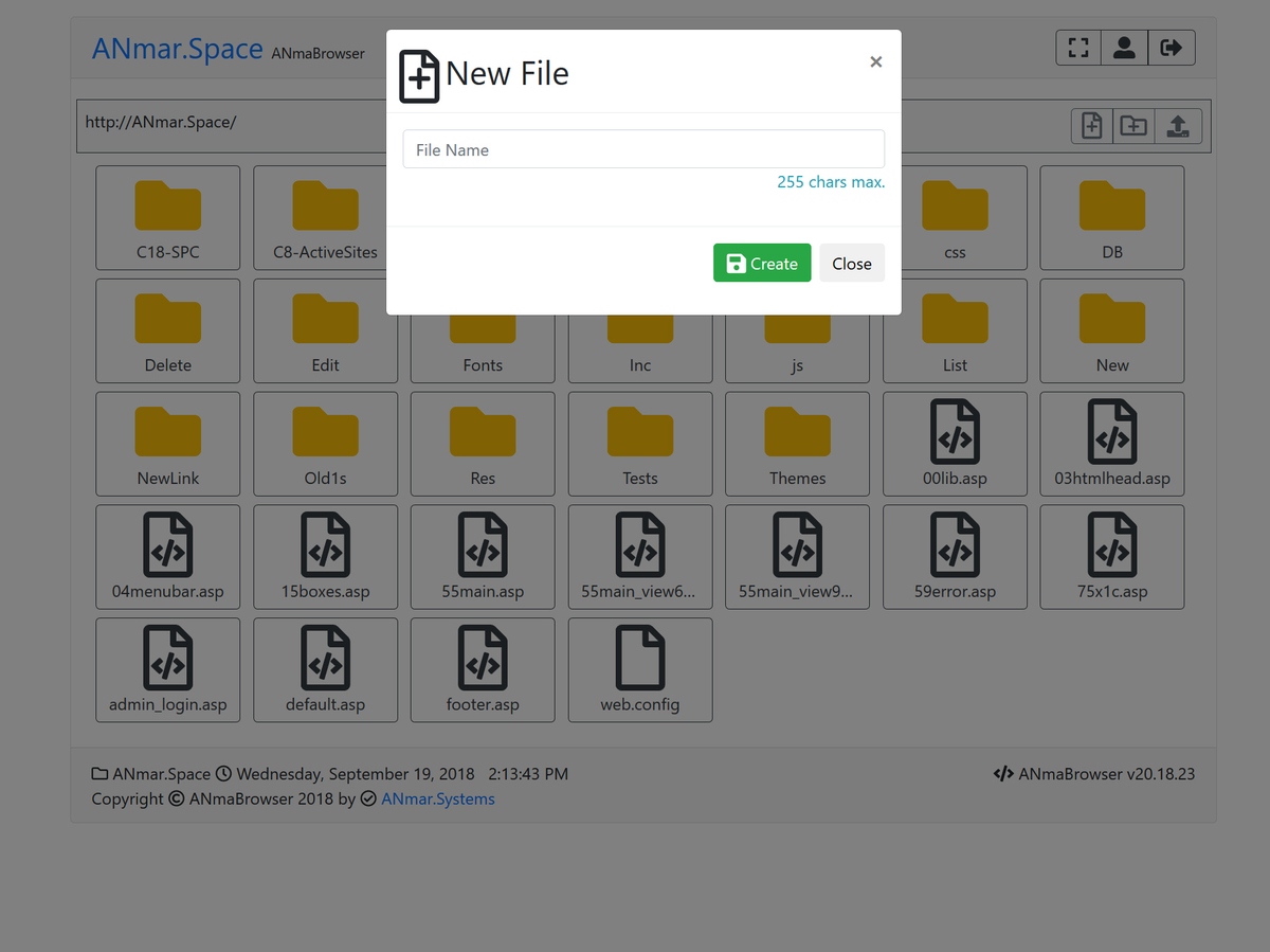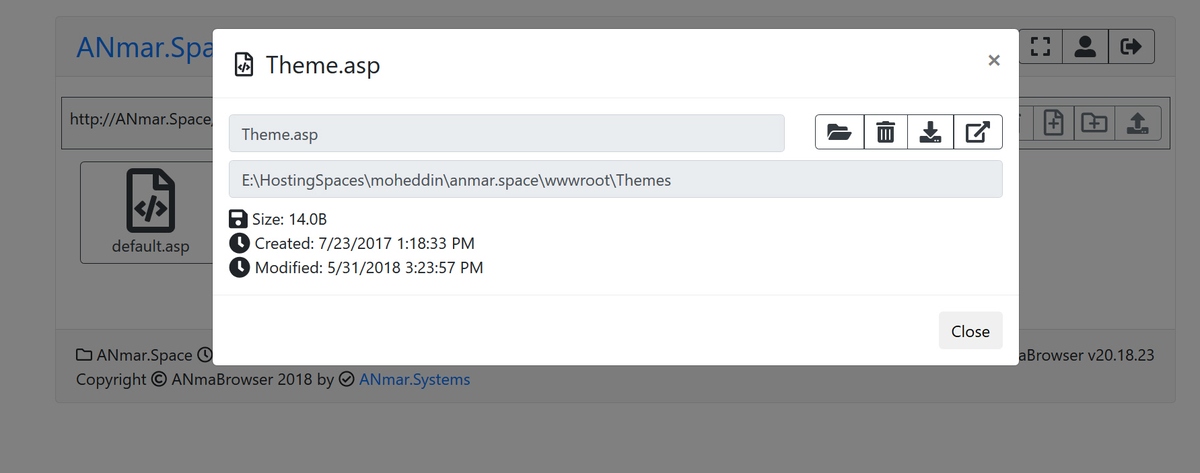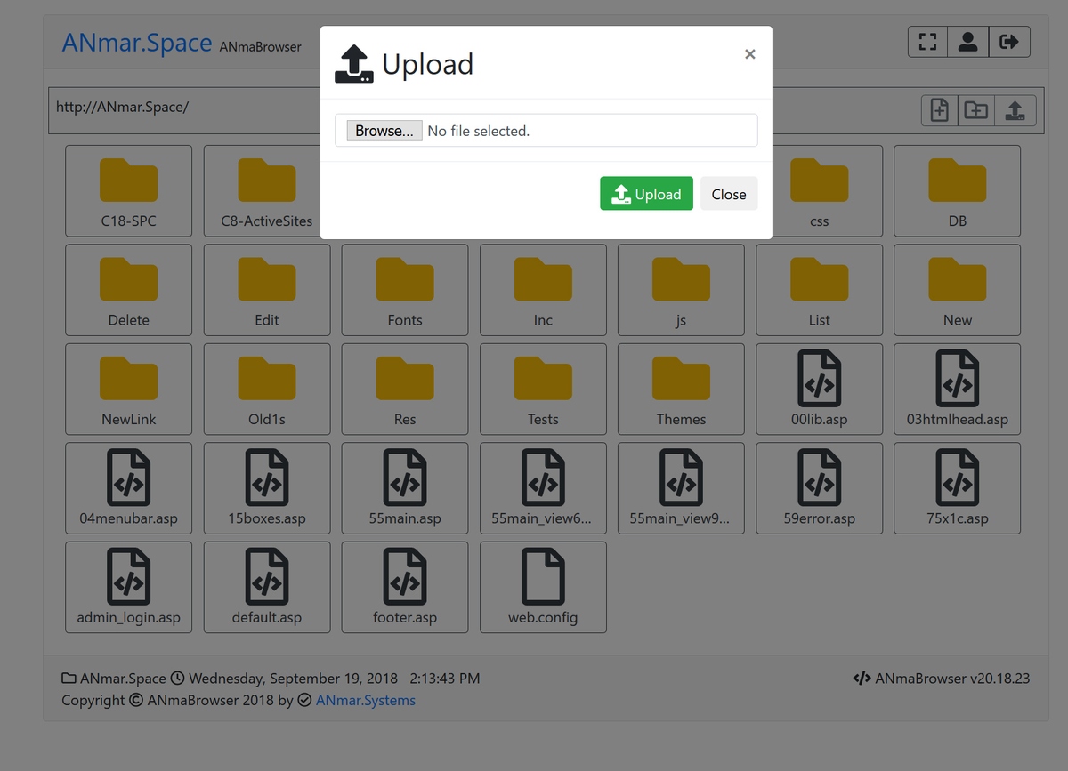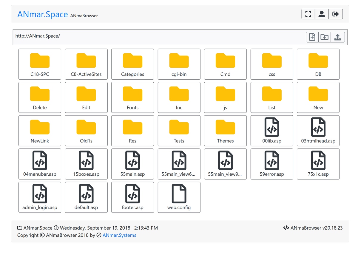 Single file, Classic ASP, Bootstrap 4.1 and FontAwesome 5.0 file manager.