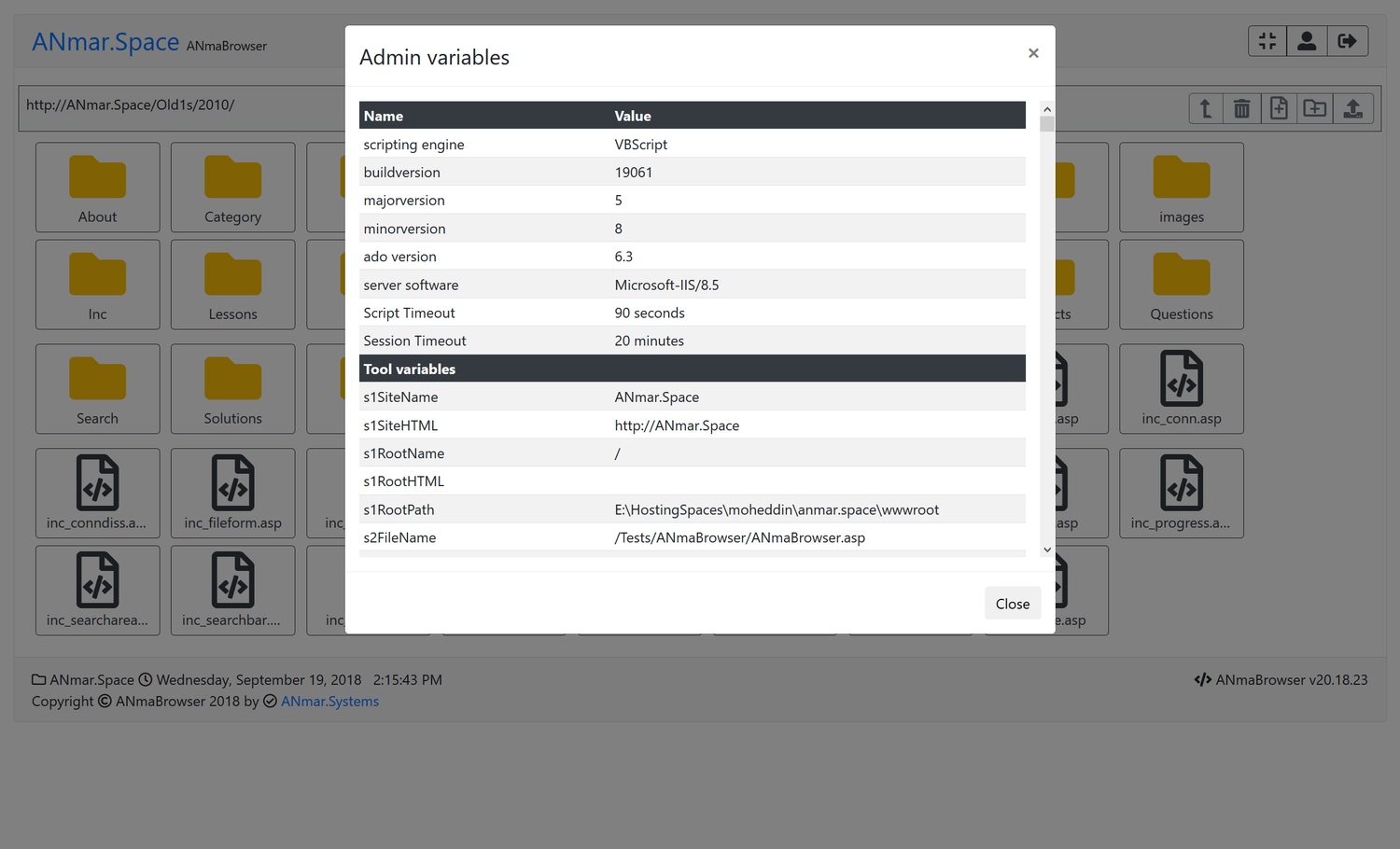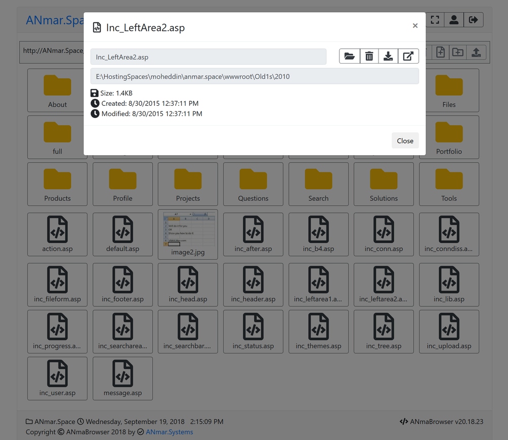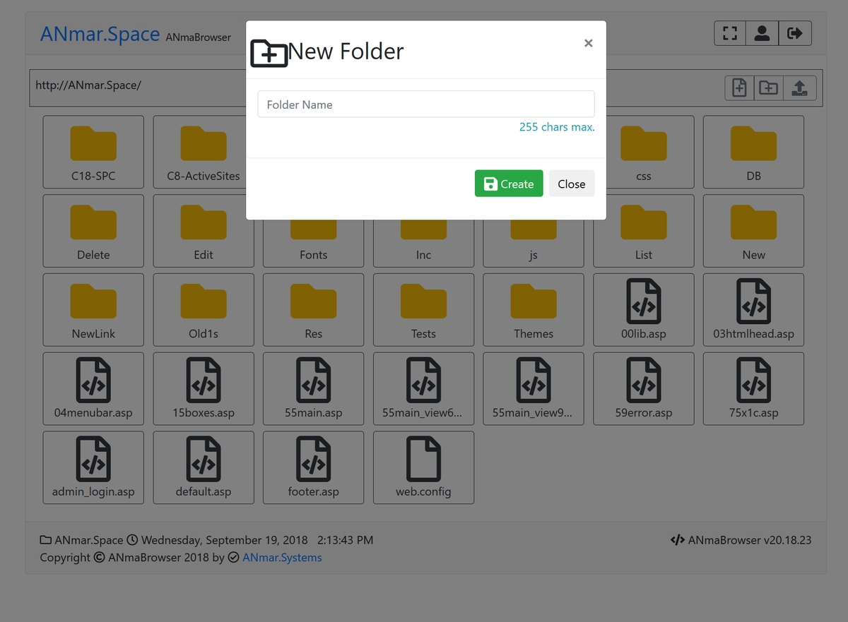 Single file, Classic ASP, Bootstrap 4.1 and FontAwesome 5.0 file manager.