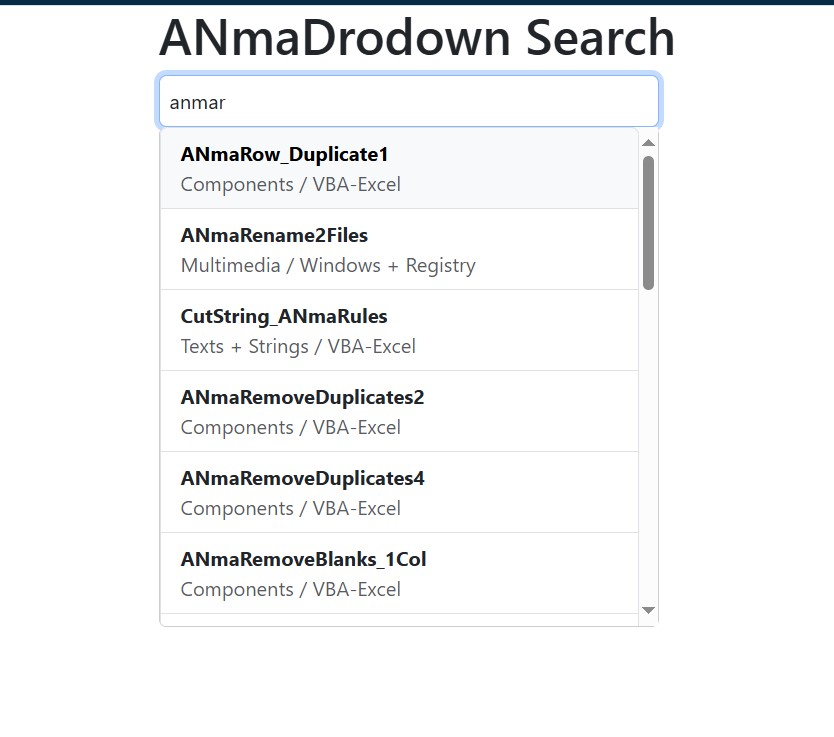 Shows drop down menu of matching items when user searches in textbox with ability to go to the item once clicked.