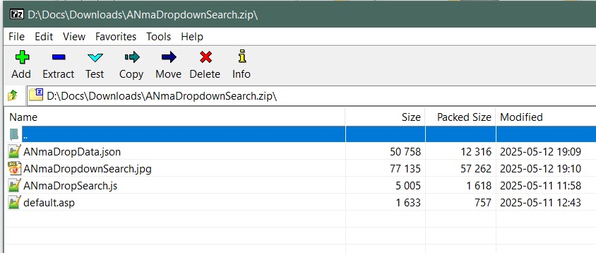 Js to house actual searching code. Json data file to have list of matching items, and Asp html page.