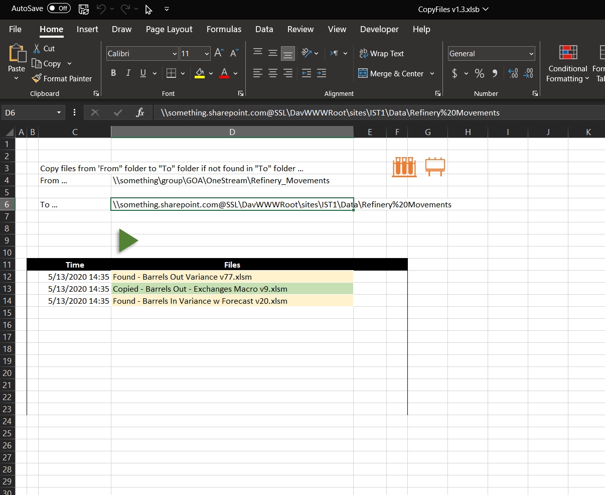 Simple macro to make sure we have a copy of all files in a folder found in another folder.