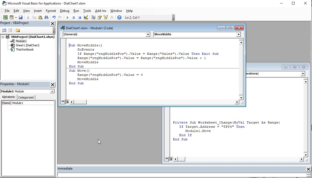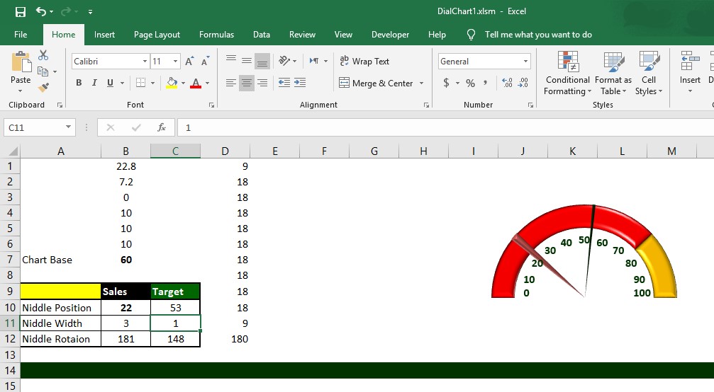 A dial chart inside Excel using VBA code.