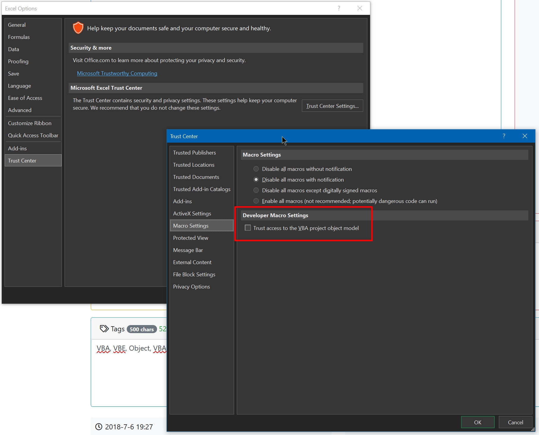 User need to setup to trust VBA Access, default is not trust