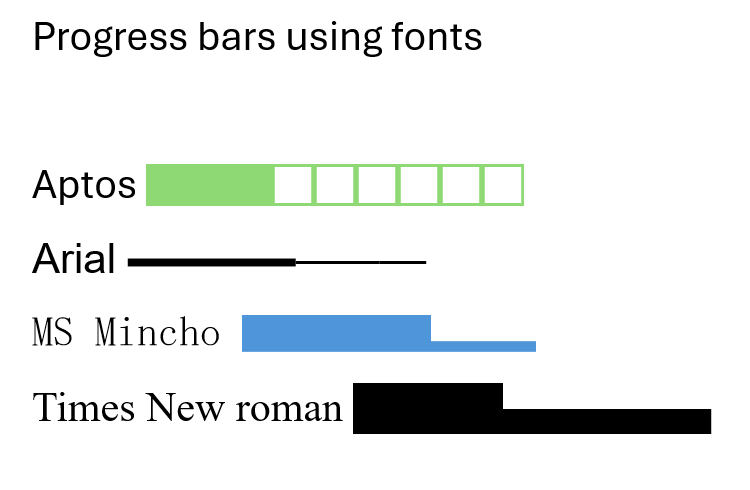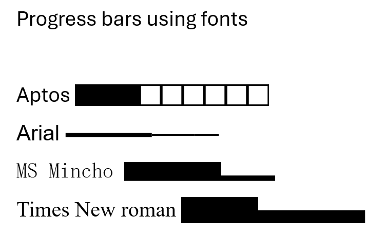 Show progress bar using fonts only. Neat trick to use inside HTML or word processors.
