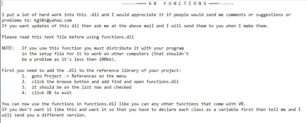 Old DLL housing list of functions to be used and called by any application, possibly not working in recent Windows versions.