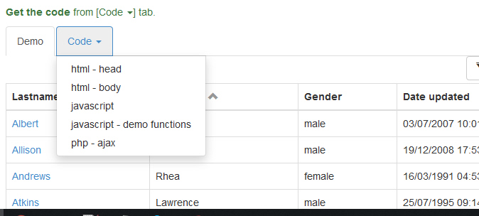 Bootstrap grid with php server-side example code (jQuery Datagrid plugin)